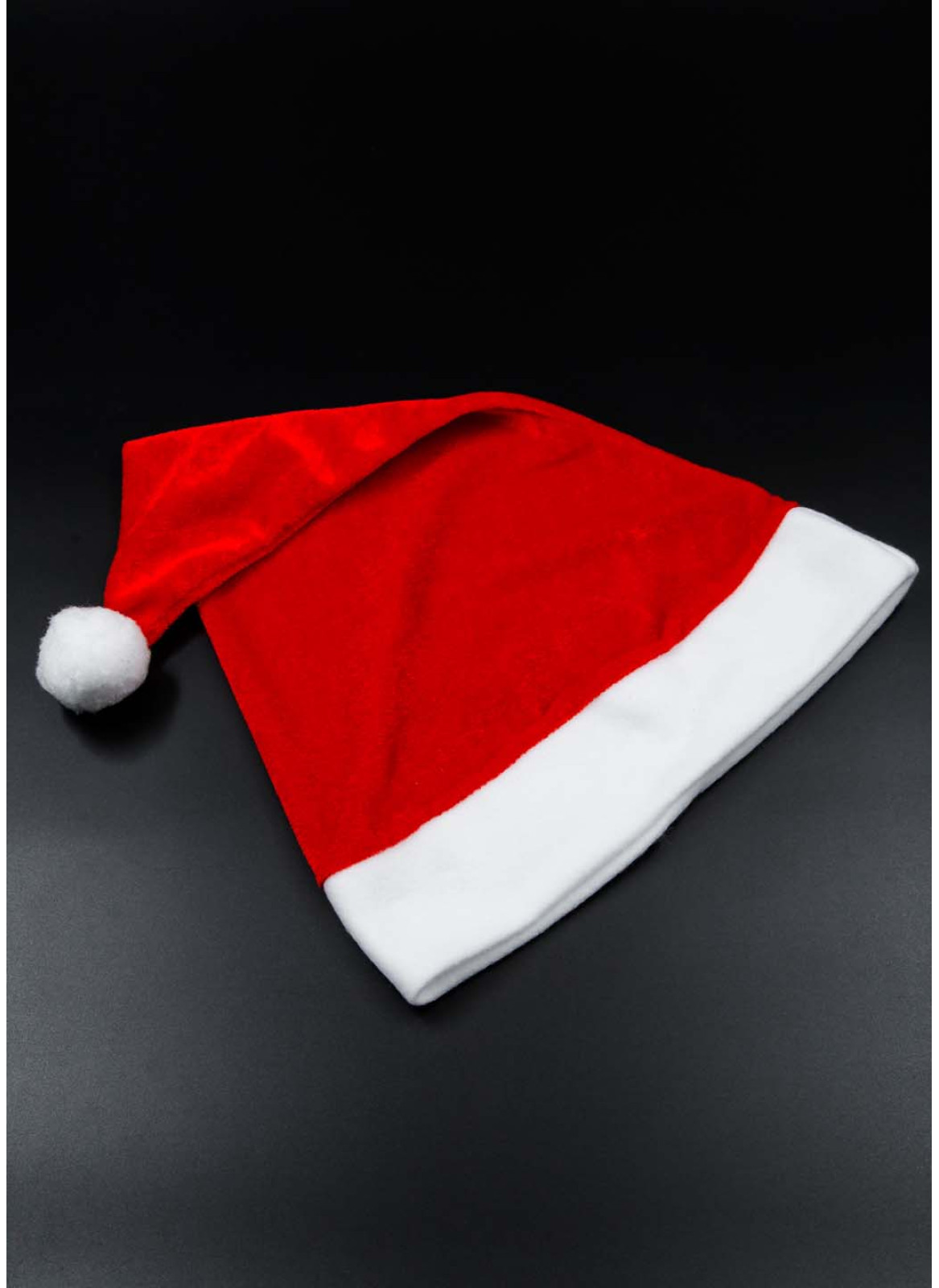 Ковпак новорічний. Матеріал червоний фліс або червоний оксамит. Білий патент з мякого оксамиту. Висота 43см, діаметр - 26см.
