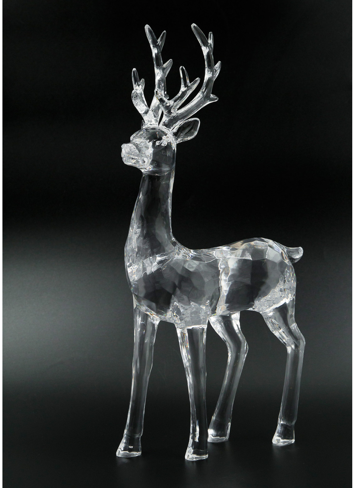 Олень з акрилу, дуже акуратно зроблений. Висота загальна 33 см. Ширина 17см. Кожен в окремій картонній упаковці, має пінопластову форму.