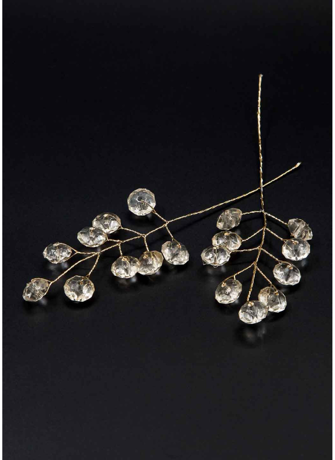 Гілочка з кристаликами (1 на 0.5см), загальна довжина 16 см, довжина частини з кристалами-7см. Загальна кількість кристалів-9шт.В упаковці 12шт.