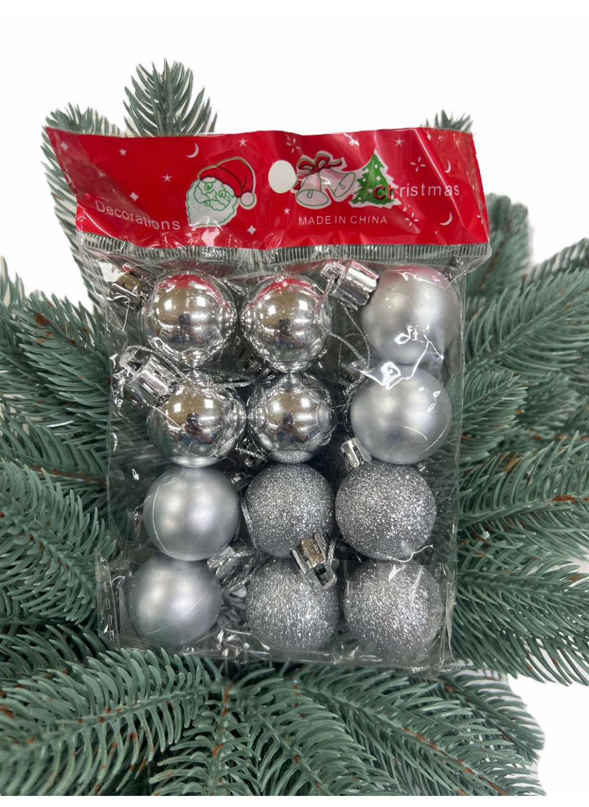 Куля 3 см. Колір срібло. У пакеті 12 шт. 3 види: матовий, глянець, присипка.