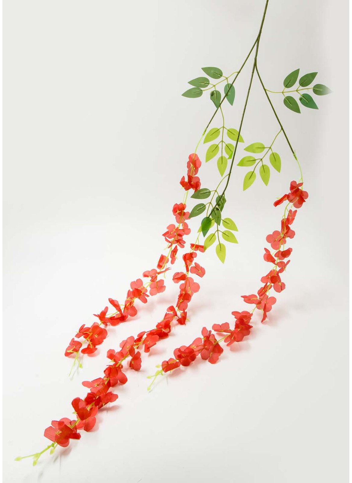 Гліцинія штучна. Загальна довжина гілки 103см. Розгалужена на 3 гілочки. На кожній гілка цвіту з дрібними та тонкими квітами. довжина кожного цвіту 57см.