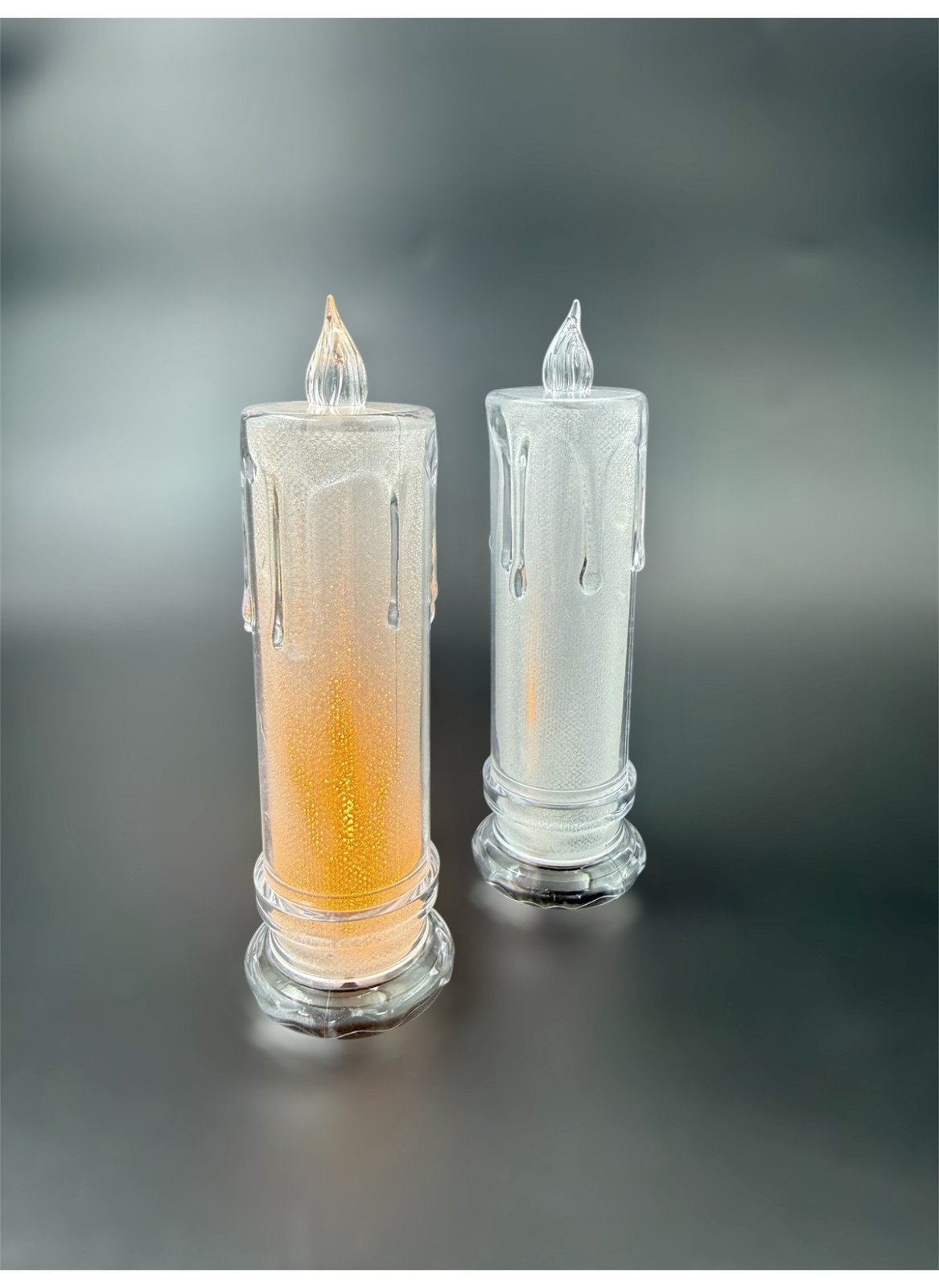 Лед.свічка, 15 см висоти, діаметром -4,5см. на трьох малих батарейках. Імітація плавленого воску. Картонна упаковка. 12 шт в уп.