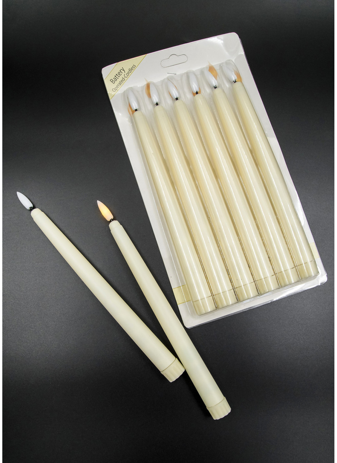 Свічка довга світлодіодна, столова. 25см висота. В упаковці 6 шт одного розміру та виду. На батарейках пальчиках. Батарейки в комплект не входять.