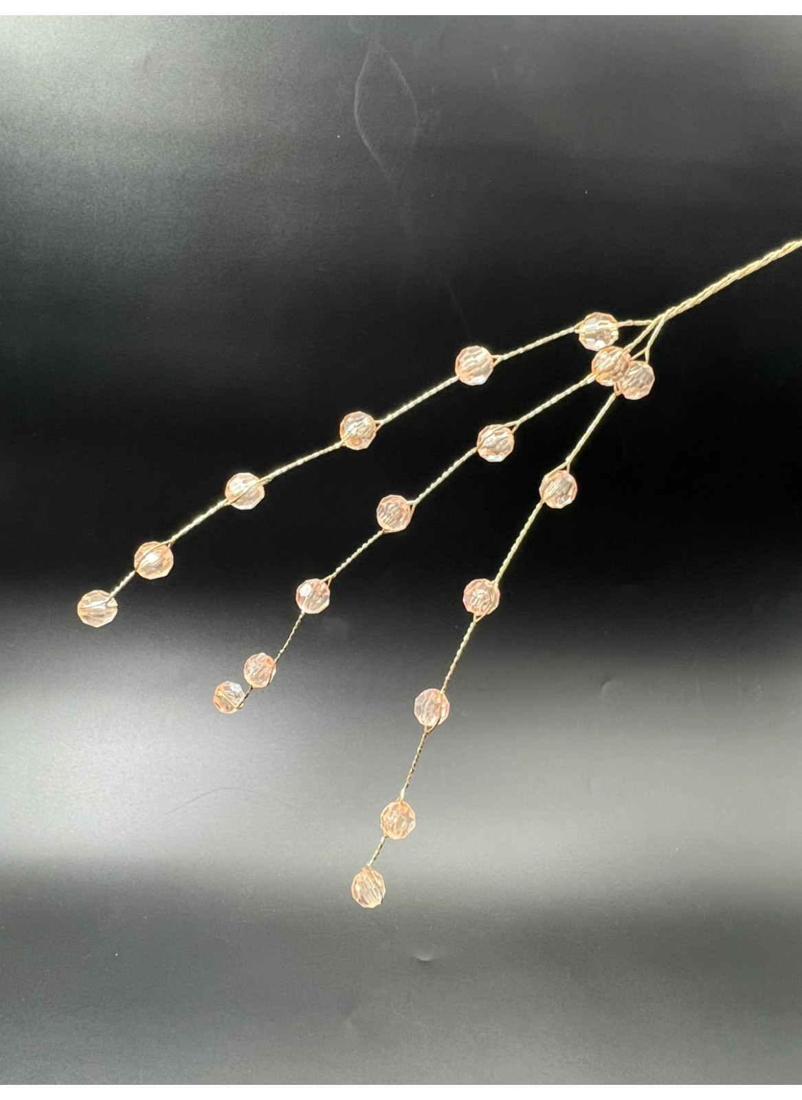 Гілочка з кристаликами 0,8мм , загальна довжина 24 см, довжина частини з кристалами-15см. Гілка має 3 розгалуження. Загальна кількість кристалів-18шт.В упаковці 50шт.