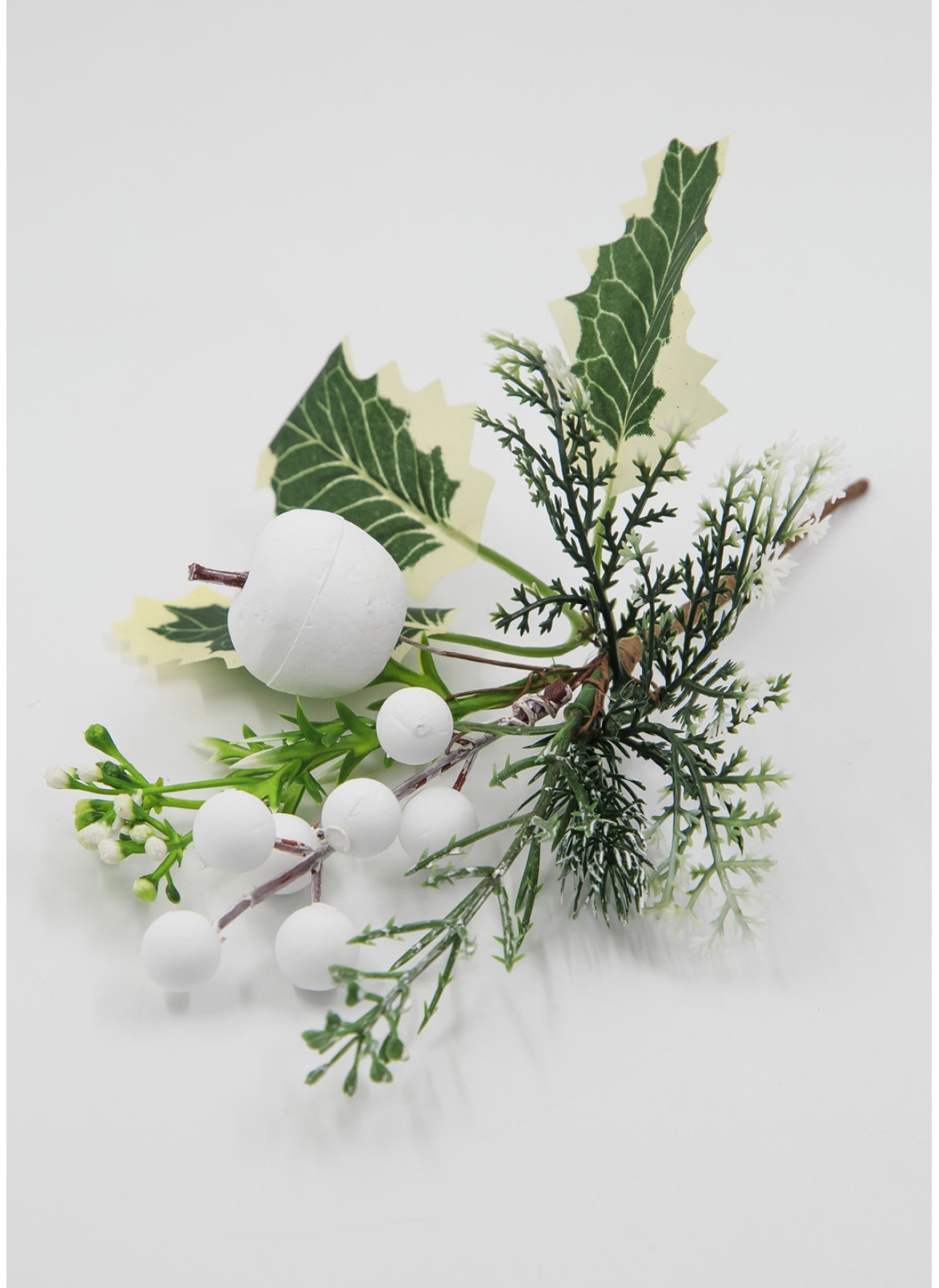 Зелена гілочка з декором з білого пінопласту-яблучко та калинка. Ціна вказана за упаковку 12 шт.