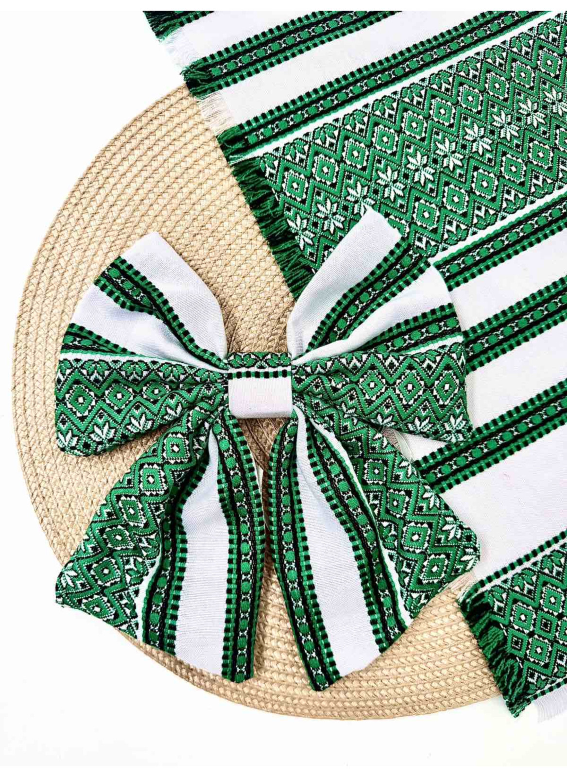 Декор на кошик, рушник та бант. №10. Зелн. на білому.