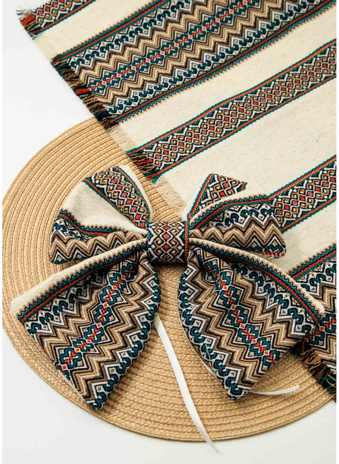 Декор на кошик, рушник та бант. №4. Смарагд на крем. 1шт.