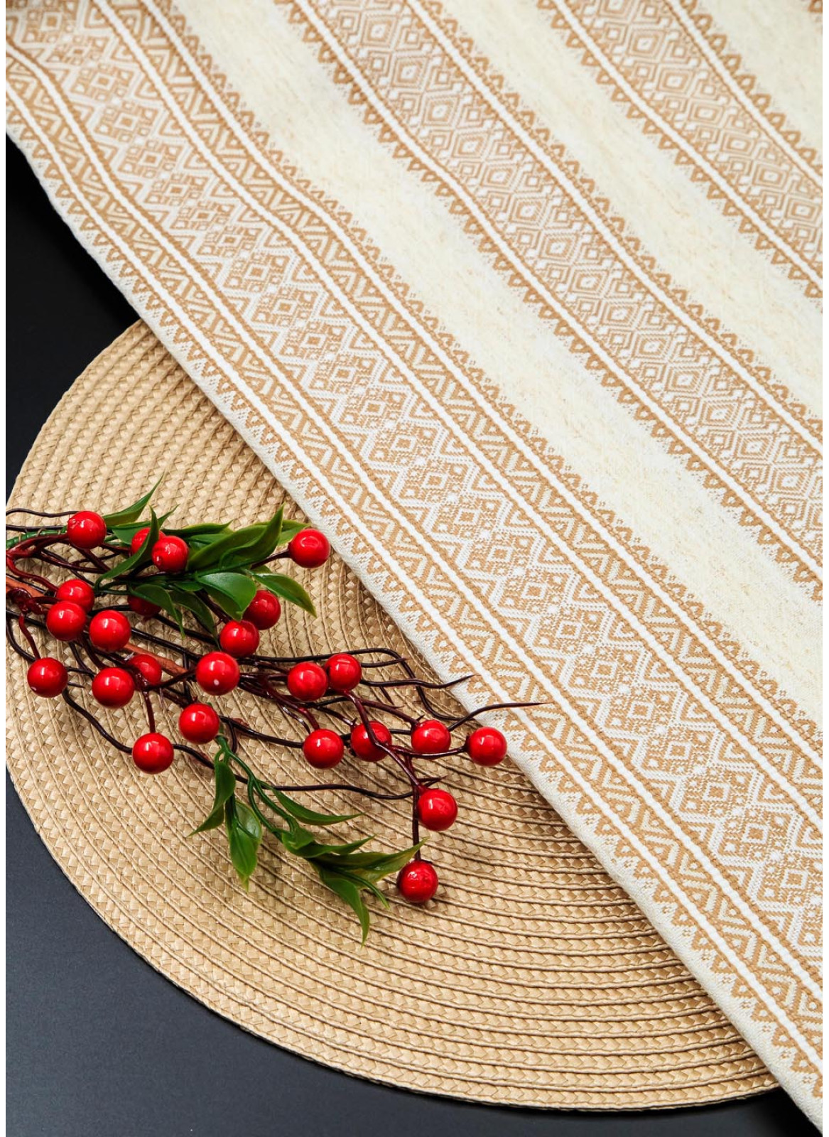 Склад: поліестер-50%, акрил-40%, бавовна -5%, льон-5%. Щільність 195 гр./м.кв. Вид: Машинна вишивка.