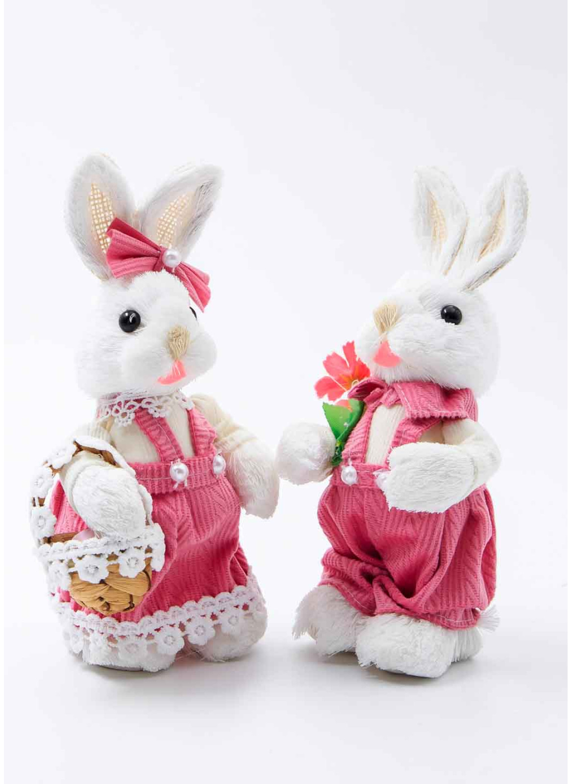 Зайчик білий з нитки, ХЛОПЧИК рожевий, 21см,1шт.