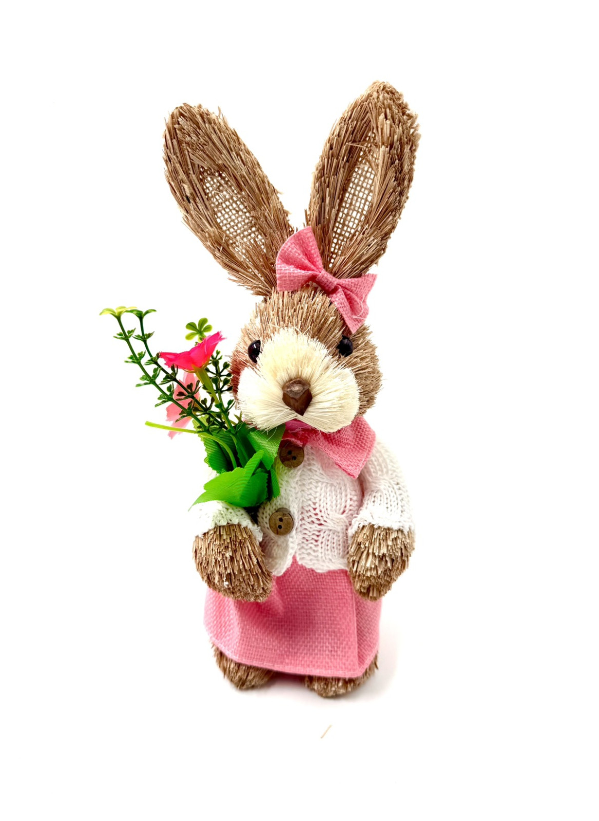 • Зайчик з соломи, ДІВЧИНКА, з квітами, 26см,1шт.