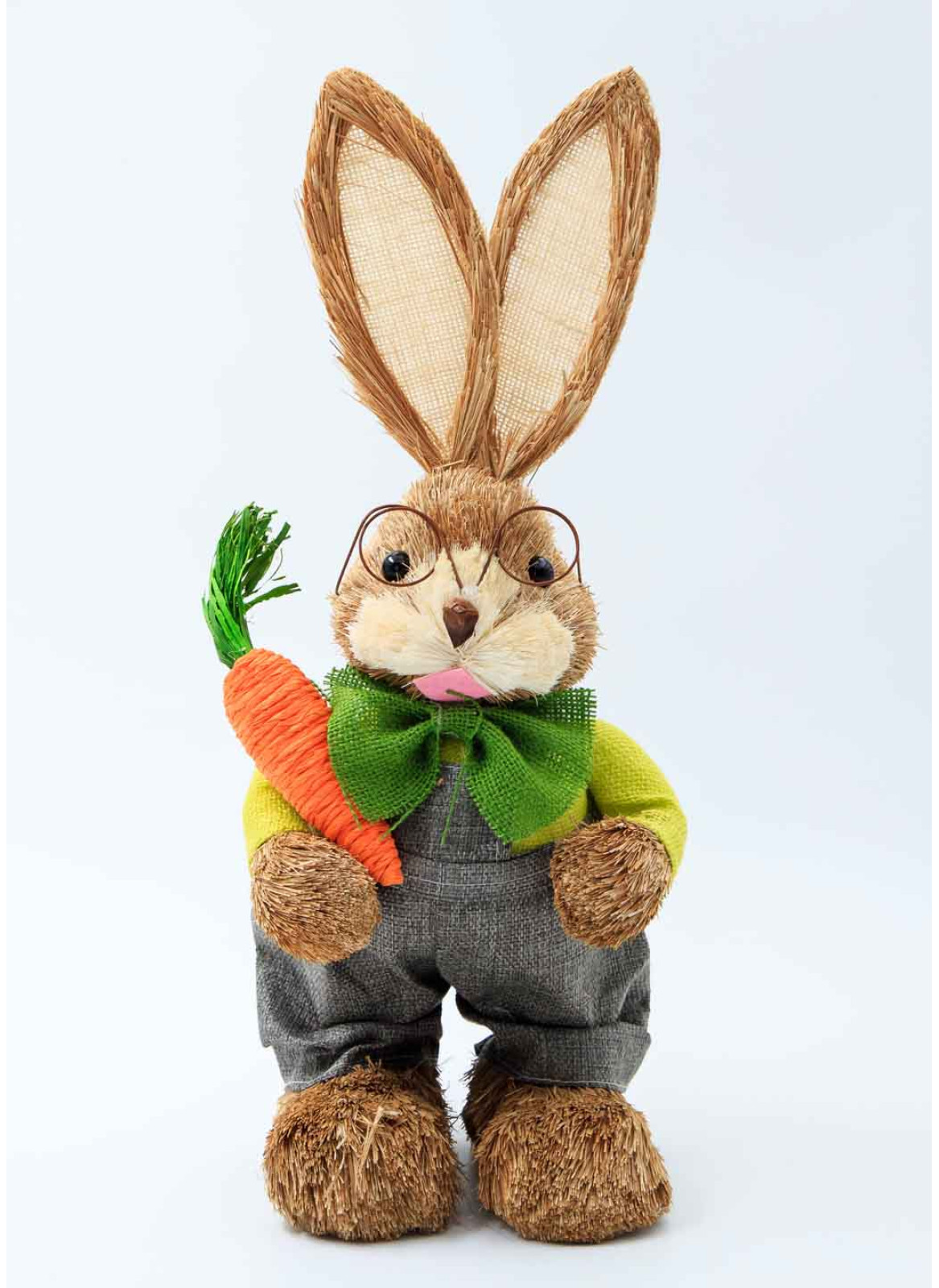 Зайчик з соломи, ХЛОПЧИК,Сірі штани, 45см, з морквинкою. 1шт.
